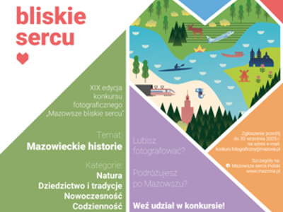 Już po raz dziewiętnasty organizowany jest przez Samorząd Województwa Mazowieckiego konkurs fotograficzny „Mazowsze bliskie sercu”. Zapraszamy uczestników konkursu do podróży po naszym regionie, zwiedzania niezwykłych miejsc, tajemniczych zakątków oraz chwil z życia codziennego, które warto uwiecznić na fotografii.