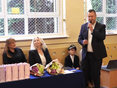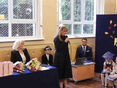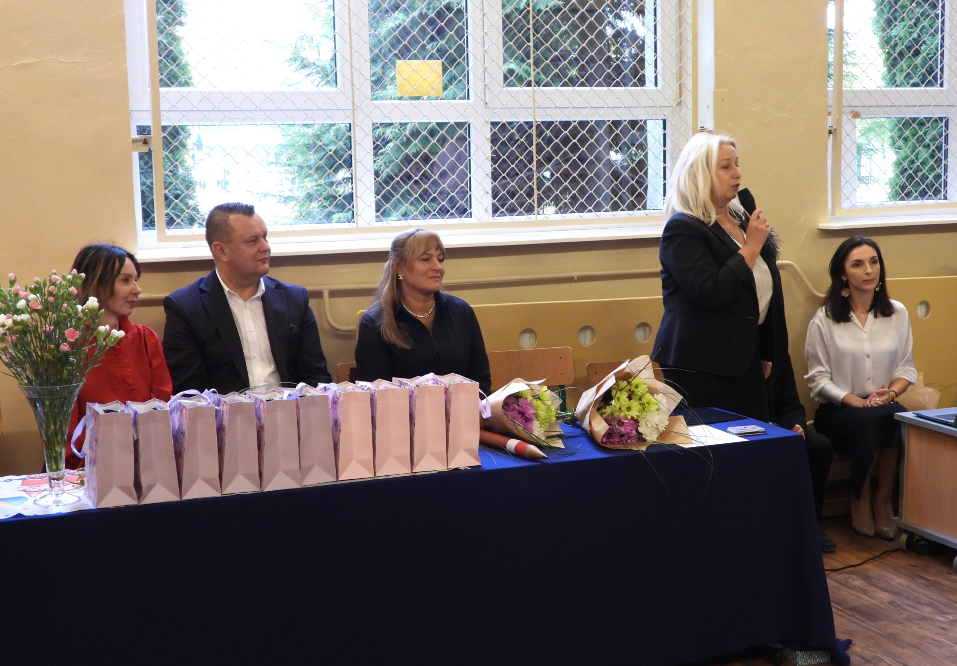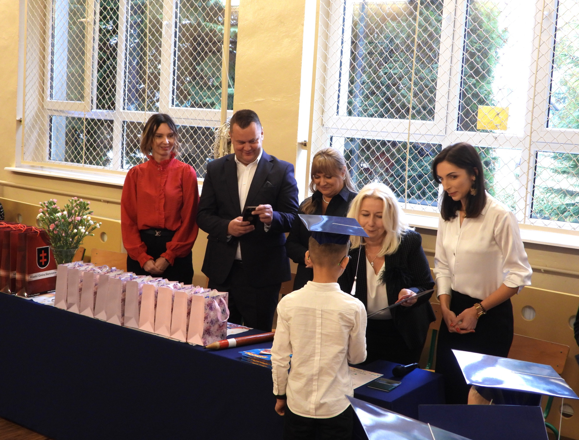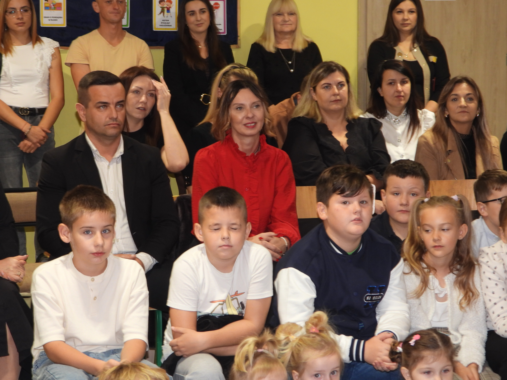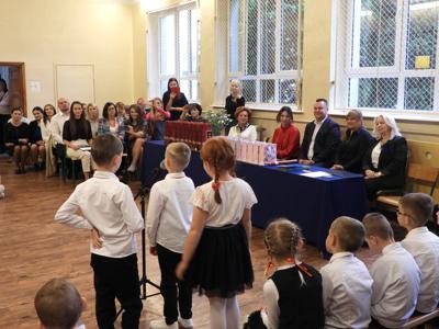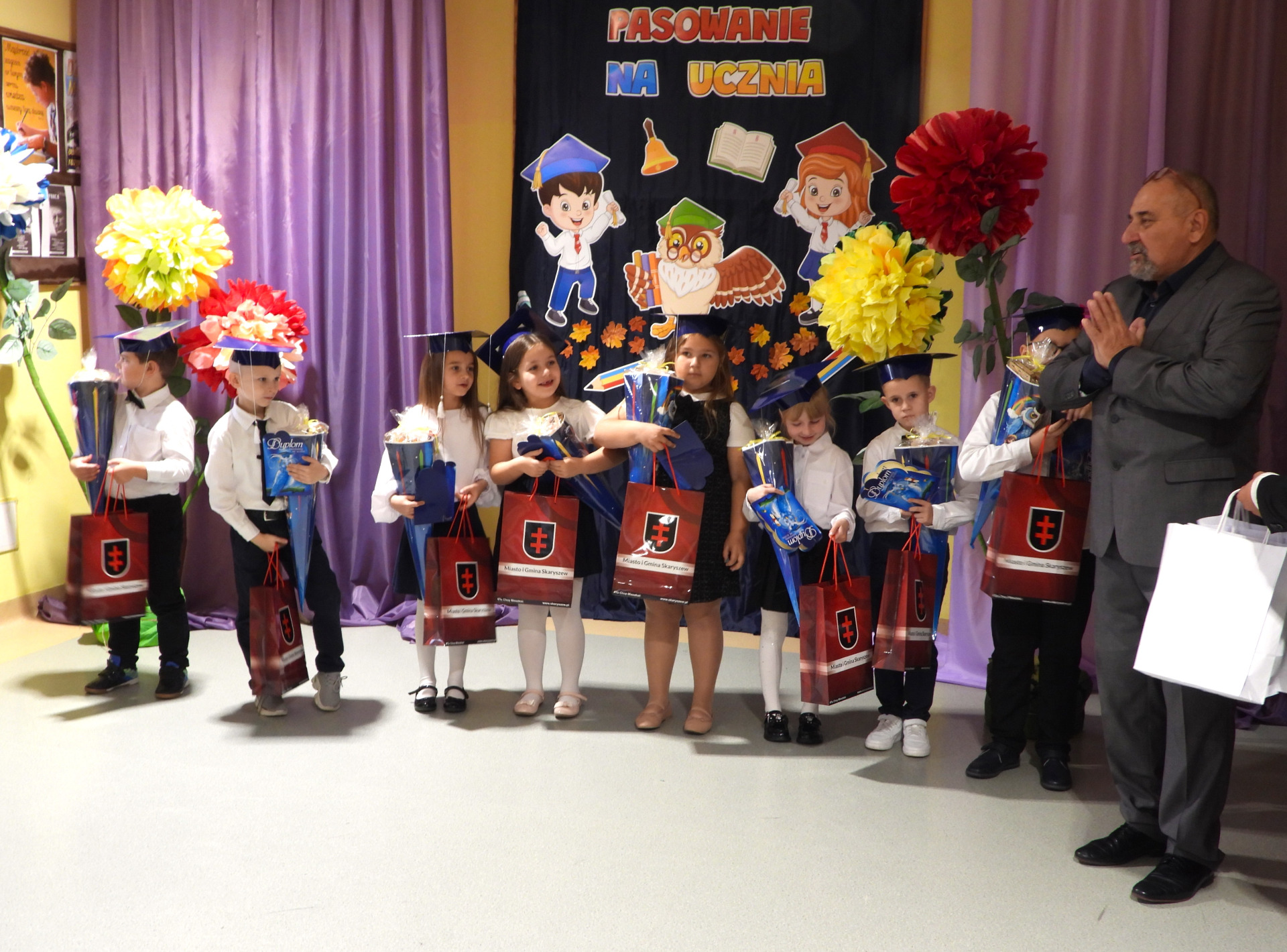 Pani Sekretarz Agnieszka Głowacka złożyła dzieciom serdeczne gratulacje oraz życzenia pomyślności na nowej edukacyjnej drodze. Podkreśliła, jak ważnym momentem jest pierwszy rok nauki, oraz wręczyła wszystkim pierwszoklasistom drobne upominki na pamiątkę tego wyjątkowego dnia.