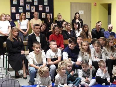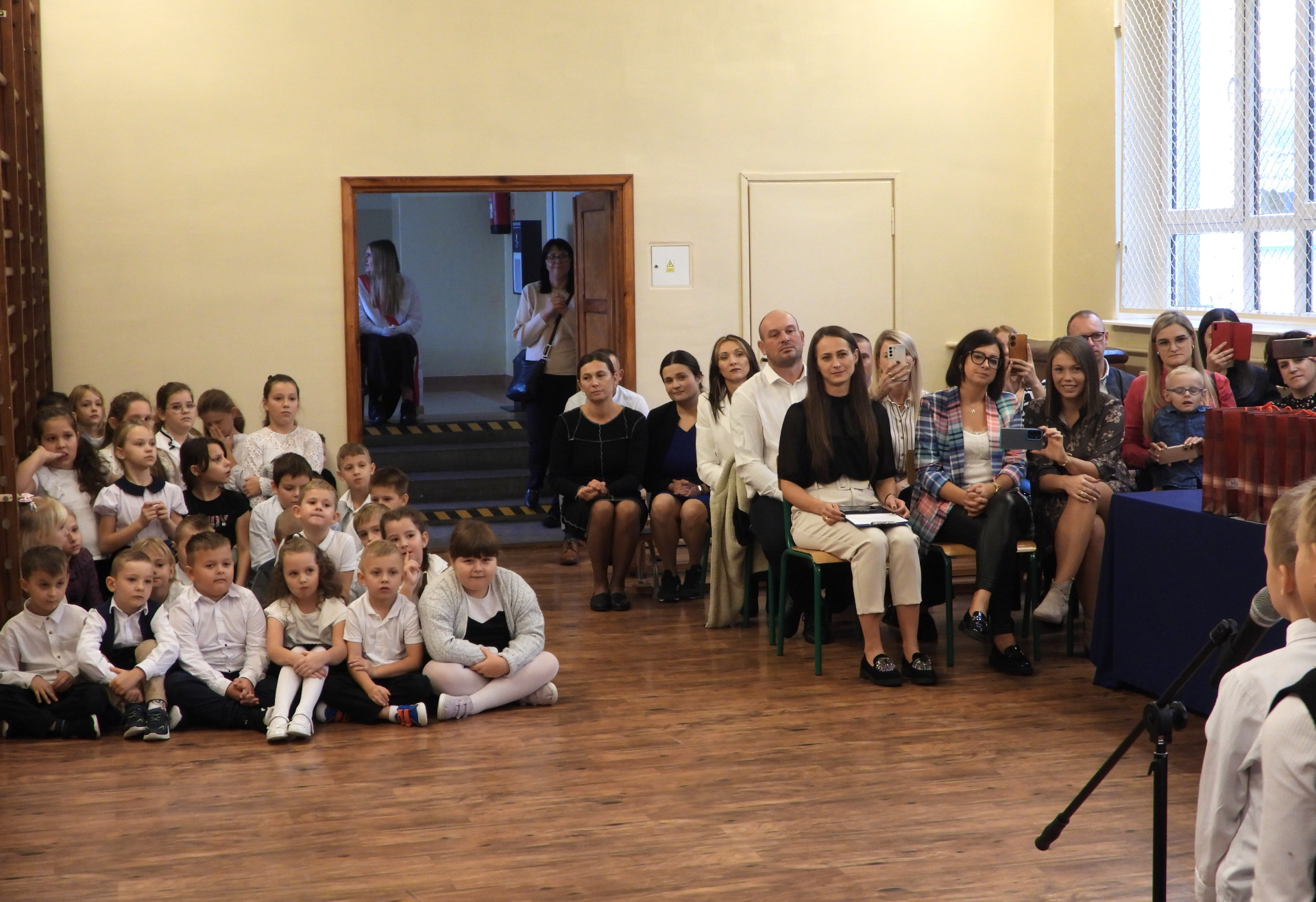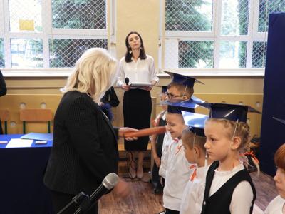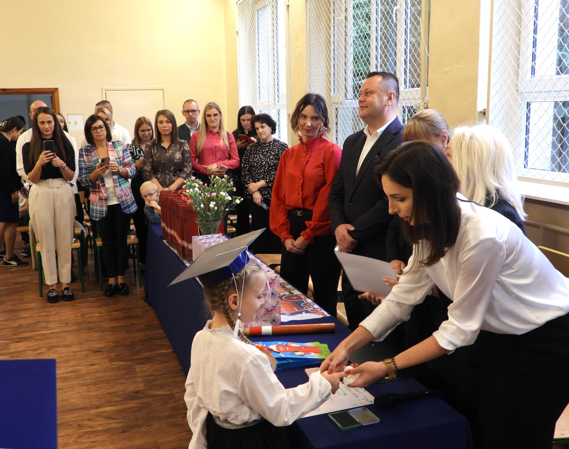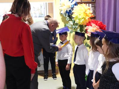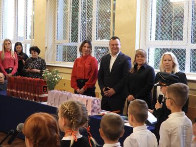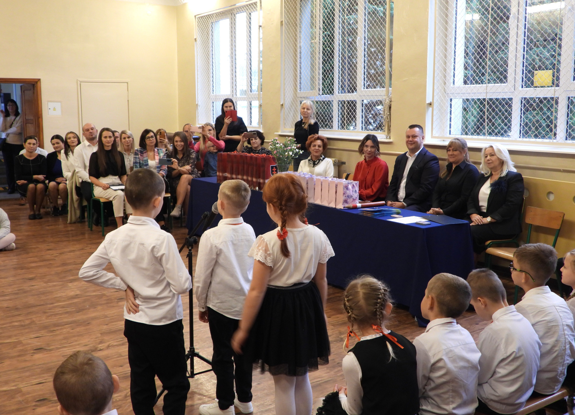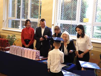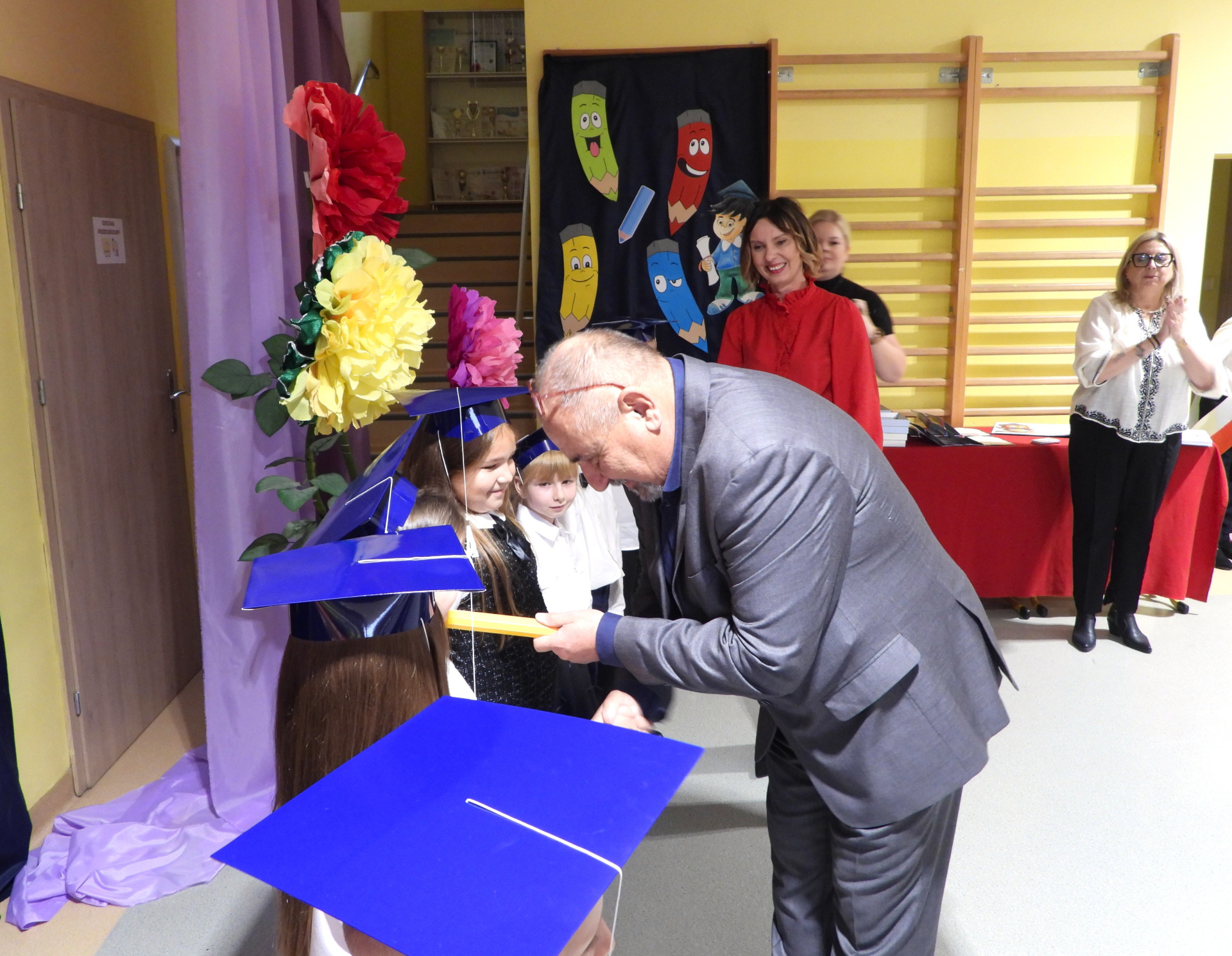 Pani Sekretarz Agnieszka Głowacka złożyła dzieciom serdeczne gratulacje oraz życzenia pomyślności na nowej edukacyjnej drodze. Podkreśliła, jak ważnym momentem jest pierwszy rok nauki, oraz wręczyła wszystkim pierwszoklasistom drobne upominki na pamiątkę tego wyjątkowego dnia.