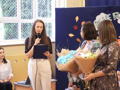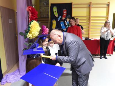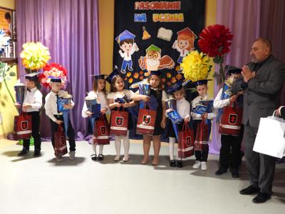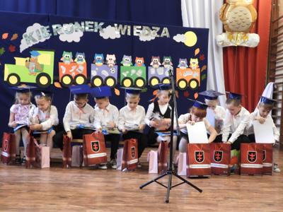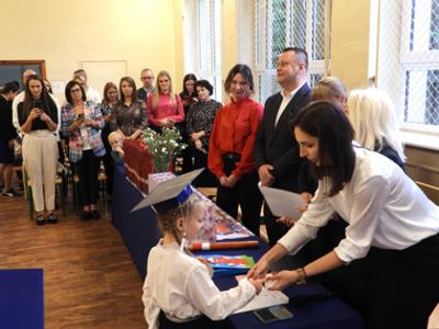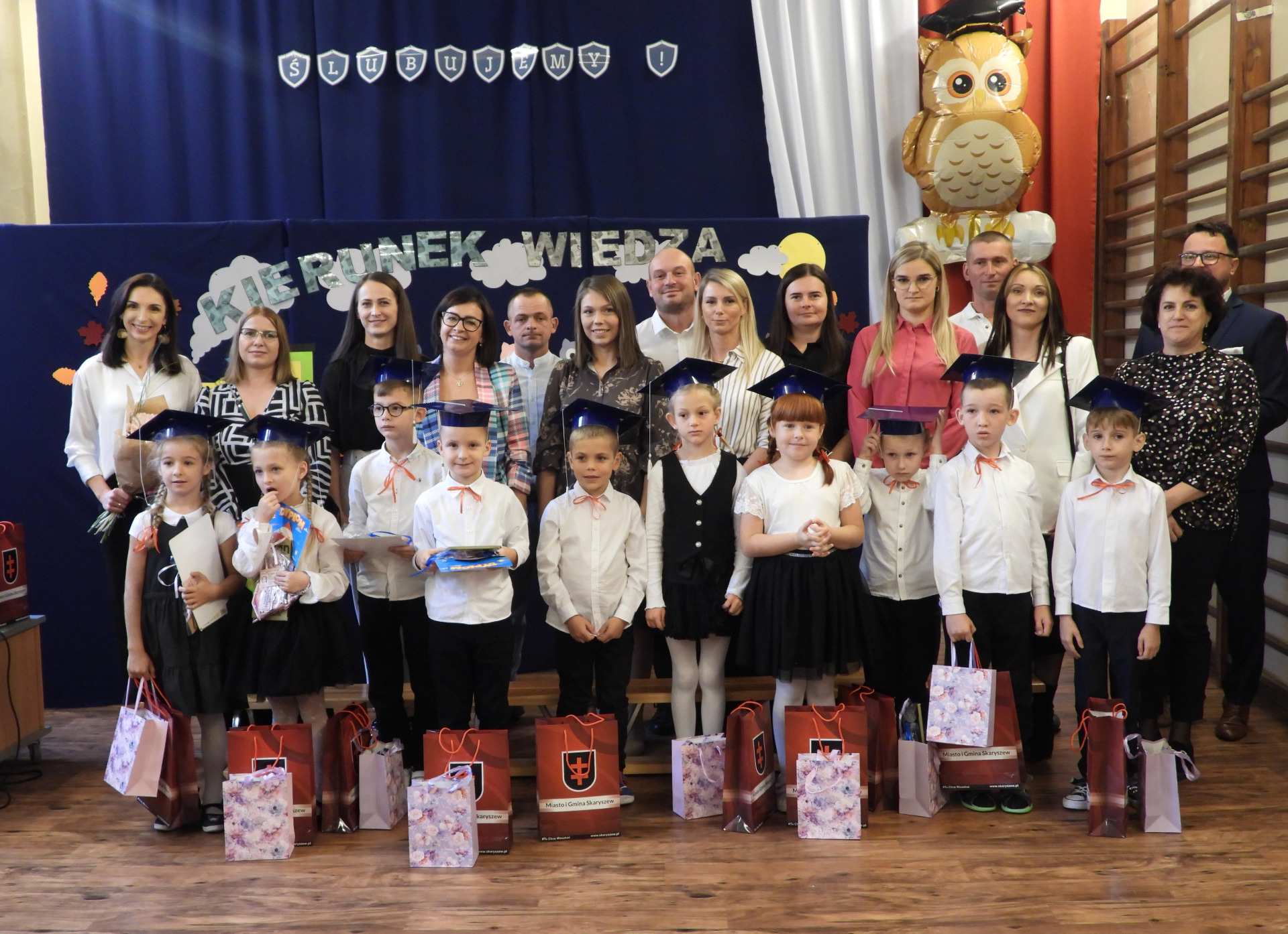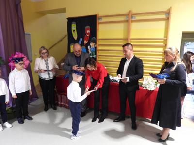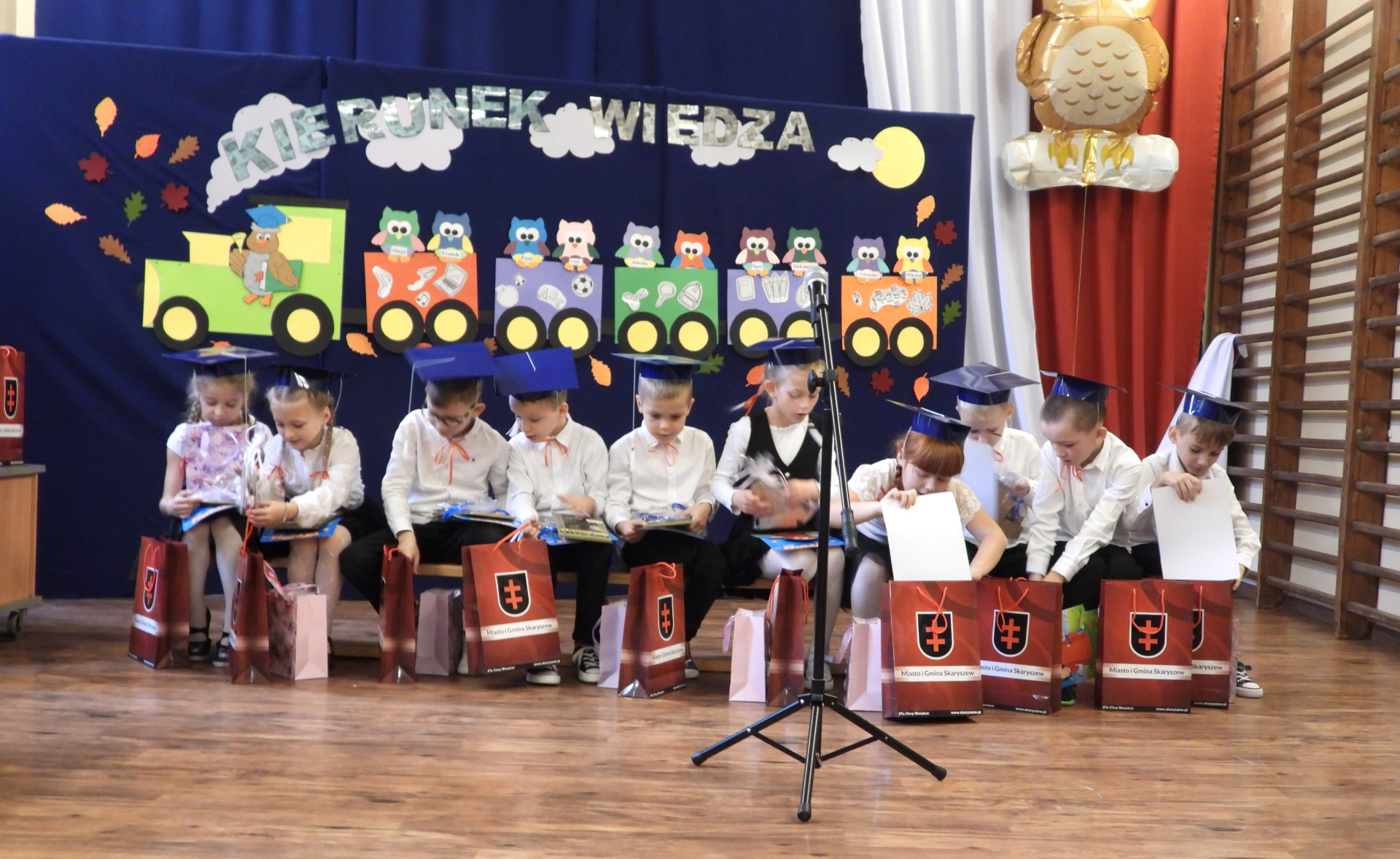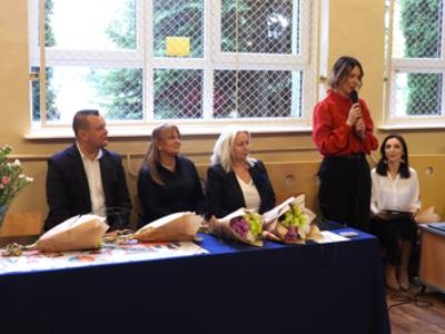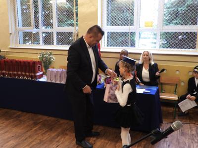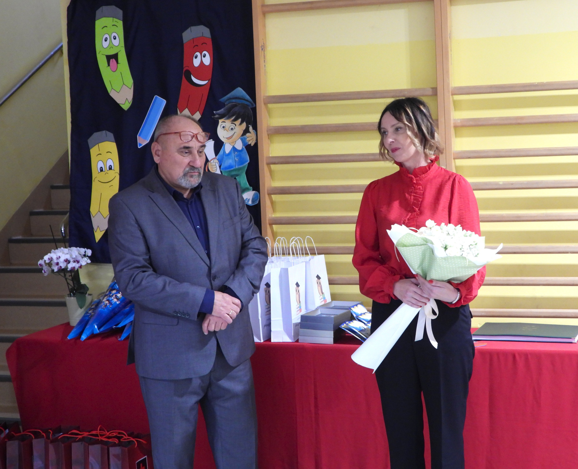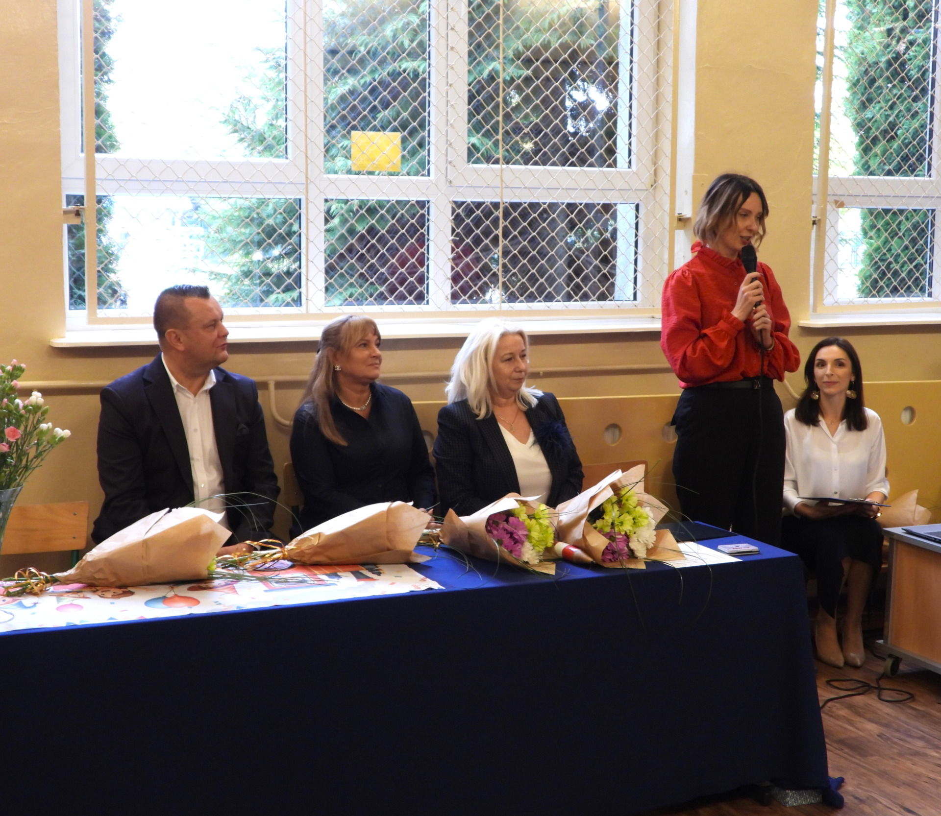 Pani Sekretarz Agnieszka Głowacka złożyła dzieciom serdeczne gratulacje oraz życzenia pomyślności na nowej edukacyjnej drodze. Podkreśliła, jak ważnym momentem jest pierwszy rok nauki, oraz wręczyła wszystkim pierwszoklasistom drobne upominki na pamiątkę tego wyjątkowego dnia.