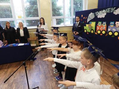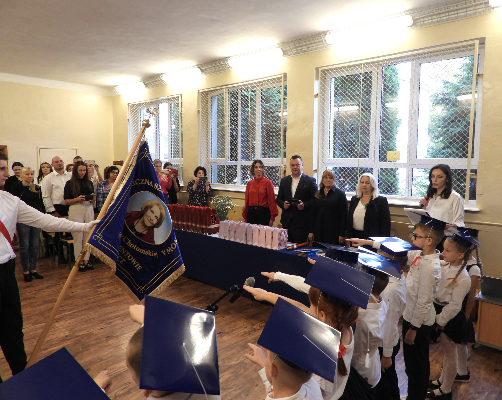 W PSP w Modrzejowicach do ślubowania przystąpiło ośmioro pierwszoklasistów, natomiast w PSP Chomentowie Puszcz – dziesięcioro dzieci. W podniosłej atmosferze uczniowie złożyli uroczyste przyrzeczenie na sztandar szkoły, zobowiązując się do sumiennej nauki, szacunku i koleżeństwa.