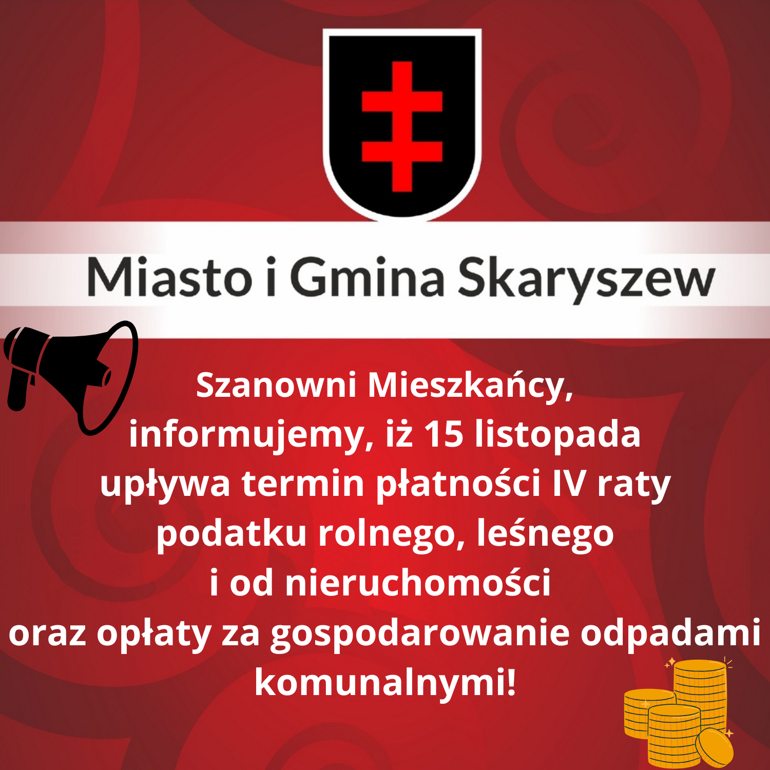 Przypominamy, że zbliża się termin płatności podatku i opłat za odpady komunalne.