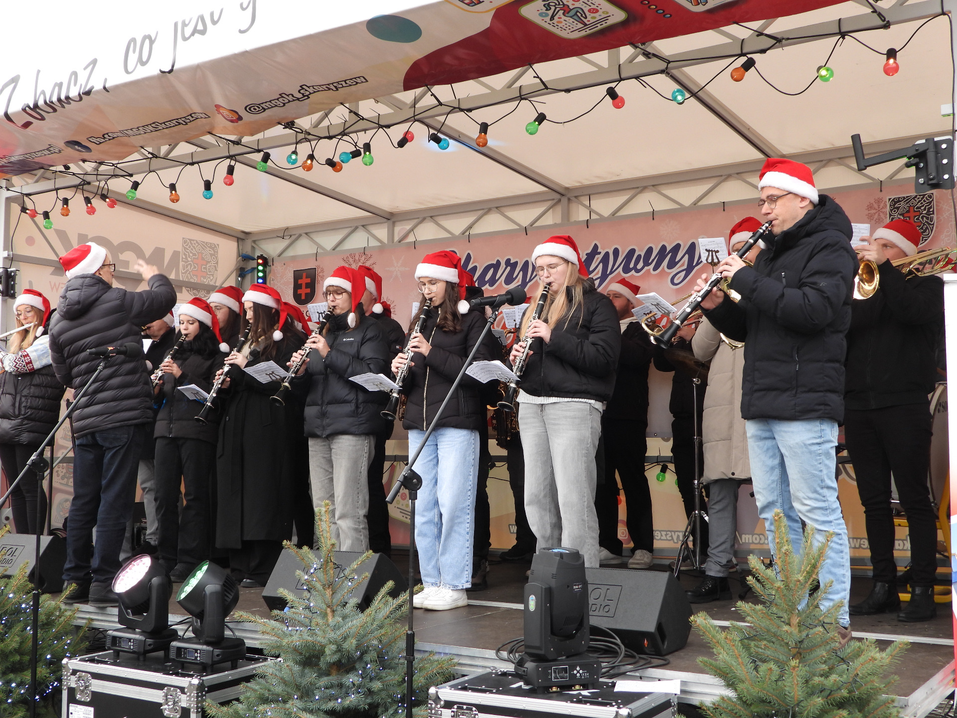 Od samego rana Rynek wypełnił się zapachami świątecznych przysmaków oraz widokiem kolorowych stoisk pełnych rękodzieła, ozdób bożonarodzeniowych i domowych wypieków. Po uroczystym otwarciu kiermaszu przez Burmistrz Justynę Grys, rozpoczęło się radosne, wspólne świętowanie.