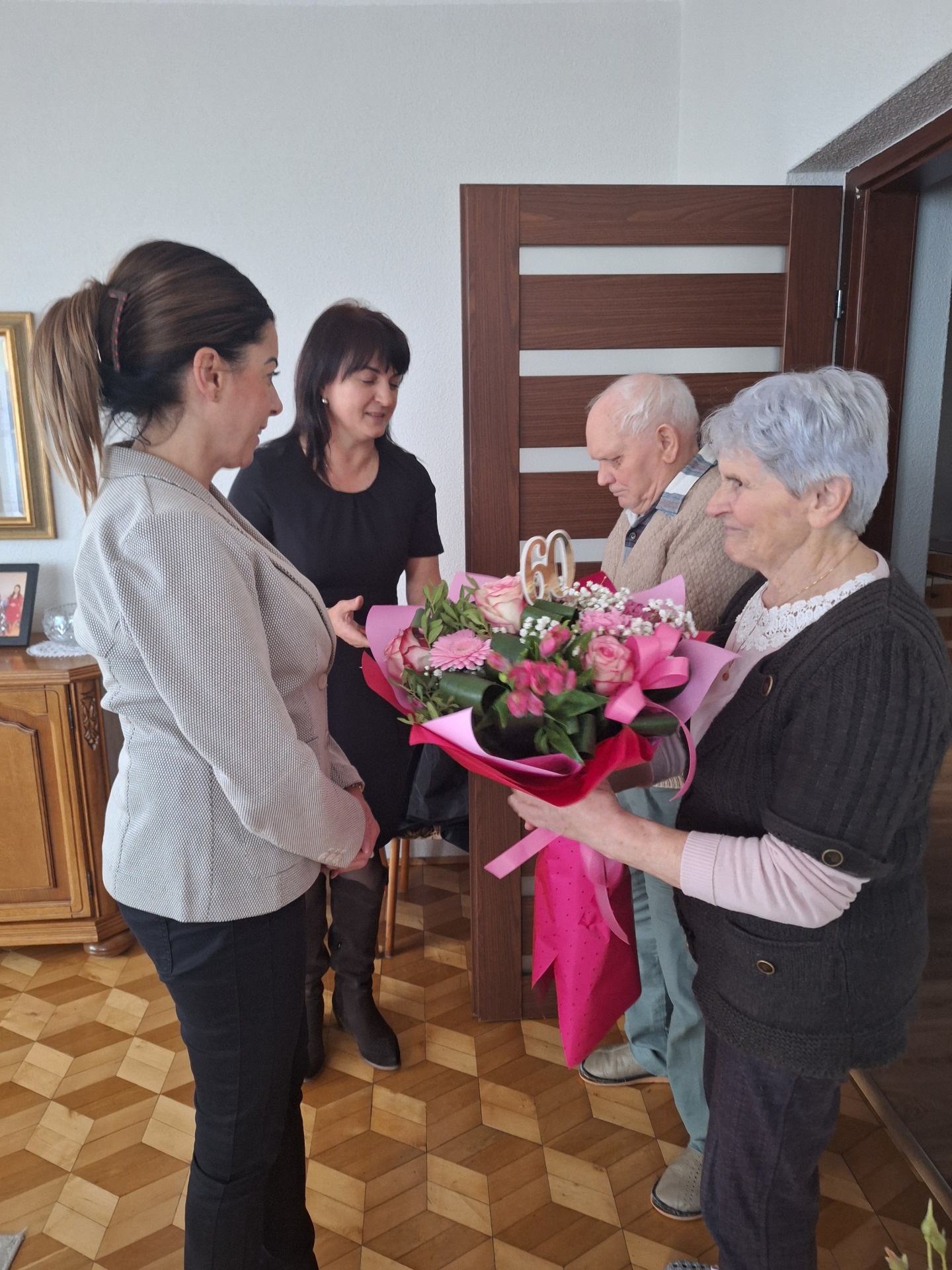 Doceniając piękno długiego, wspólnego życia Burmistrz Miasto i Gmina Skaryszew Justyna Grys wraz z Kierownikiem Urzędu Stanu Cywilnego Anetą Chojnacką odwiedziły trzy pary z naszej gminy.