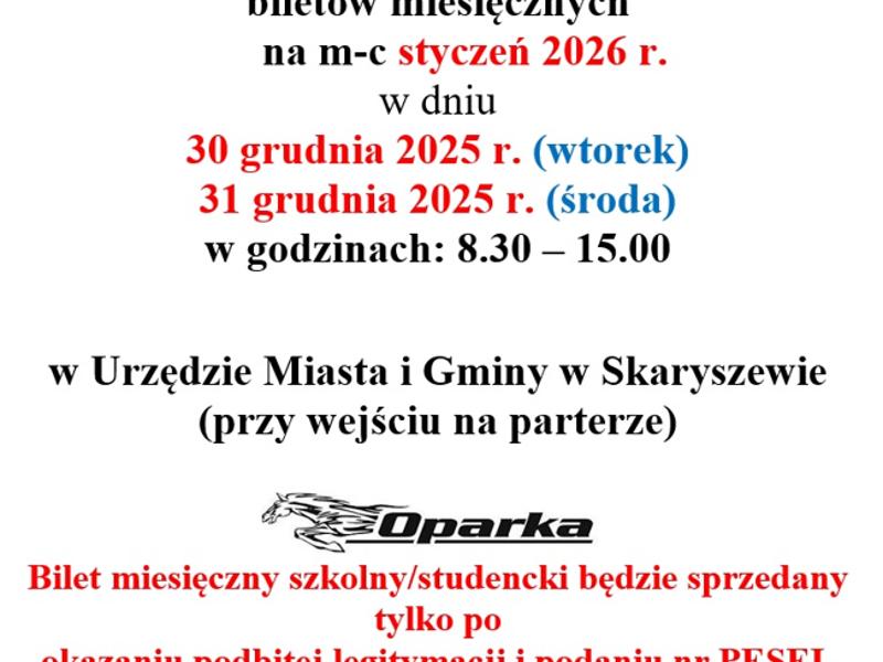 Sprzedaż biletów na miesiąc styczeń 2026 r.