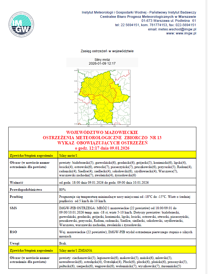 Ostrzeżenie obowiązuje od 9 stycznia do 10 stycznia 2026 r.
