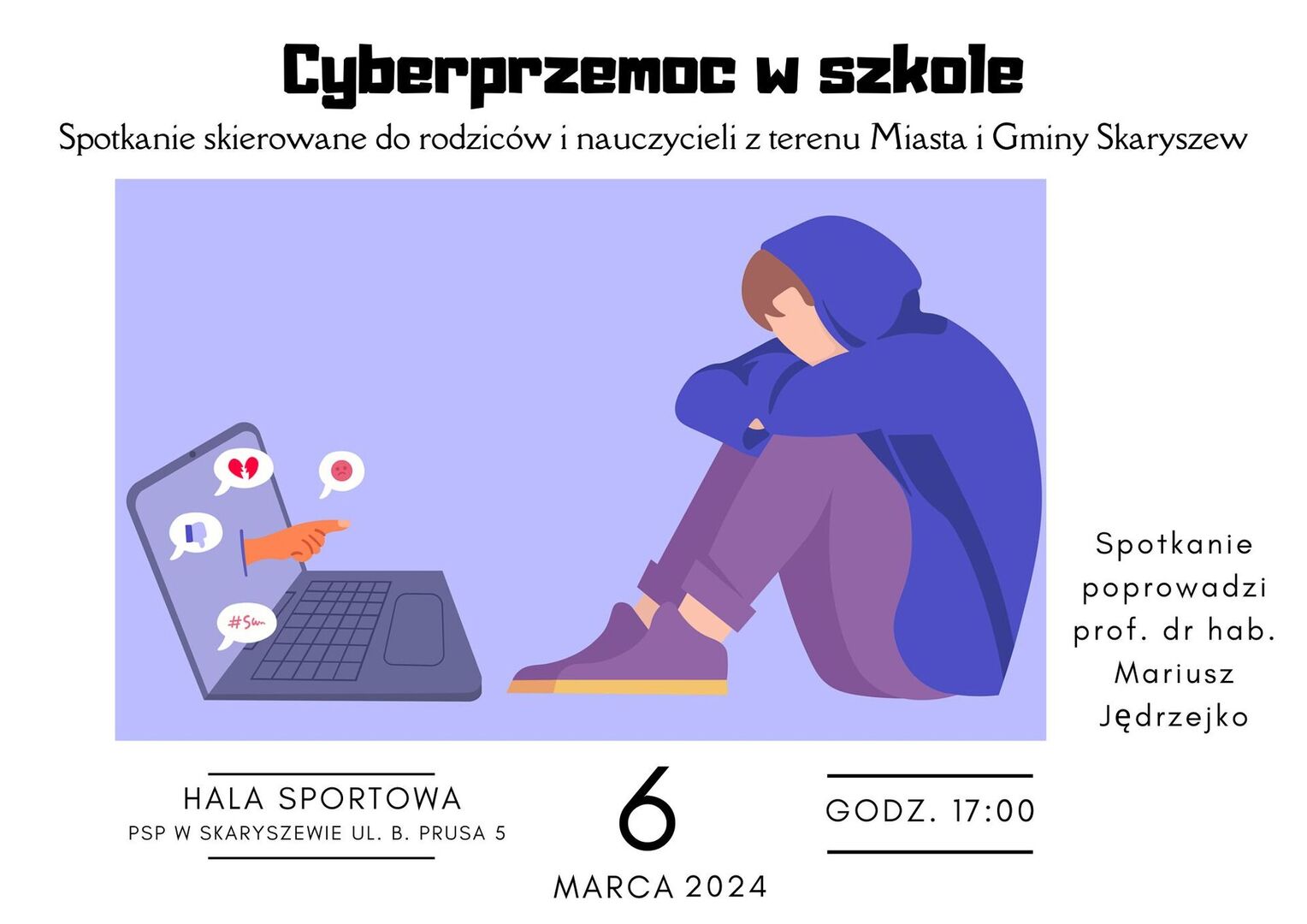 Burmistrz Miasta i Gminy Skaryszew Dariusz Piątek oraz Dyrektor Publicznej Szkoły Podstawowej im. Orląt Lwowskich w Skaryszewie Marzena Wdowiak zapraszają na spotkanie z prof. dr. hab. Mariuszem Jędrzejko, na temat: „Cyberprzemoc w szkole”.