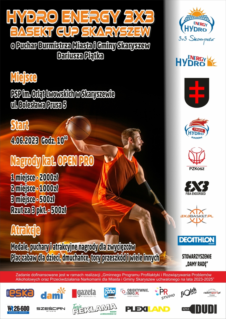 Już w najbliższą niedzielę zapraszamy na HYDRO ENERGY 3 X 3 BASKT CUP SKARYSZEW o Puchar Burmistrza Miasto i Gmina Skaryszew !