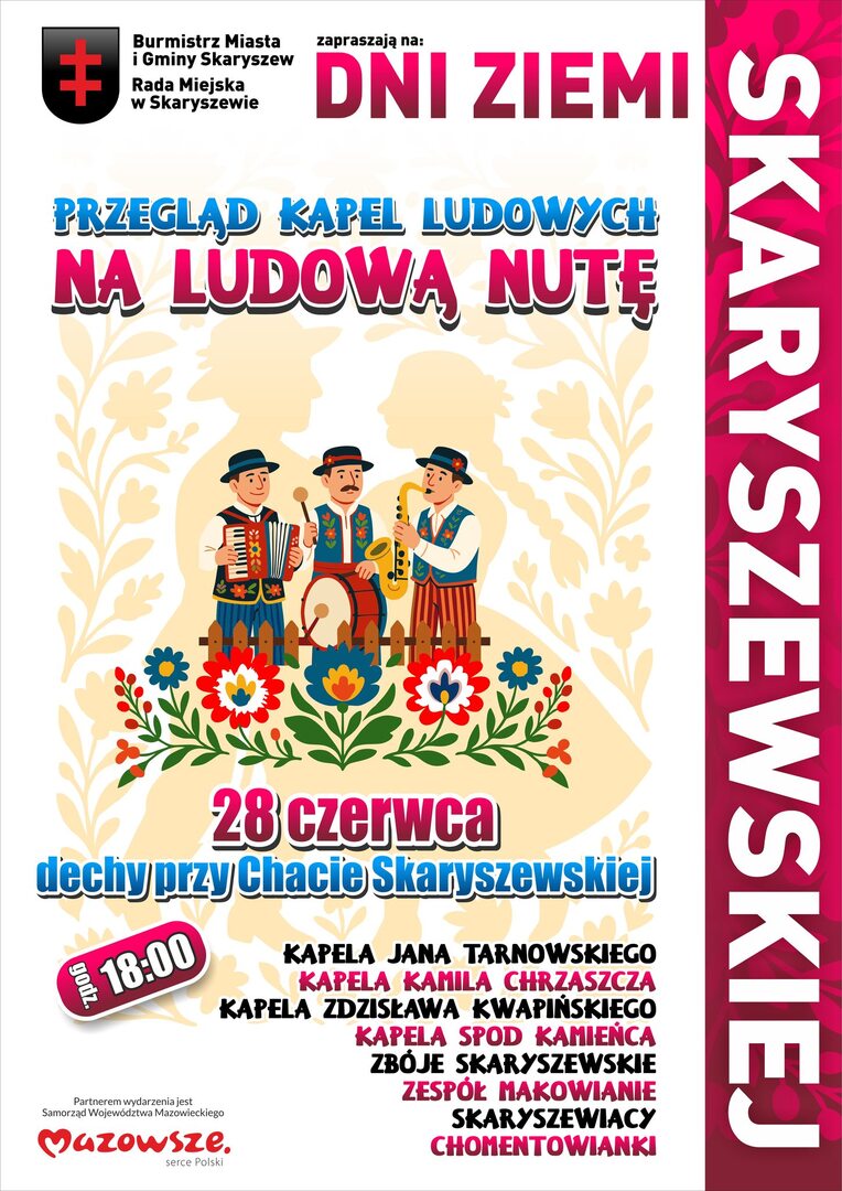 Ludowa odsłona tegorocznych Dni Ziemi Skaryszewskiej to wyjątkowa okazja, aby wspólnie bawić się przy dźwiękach tradycyjnej muzyki, przypomnieć sobie dawne tańce i poczuć ducha folkloru!